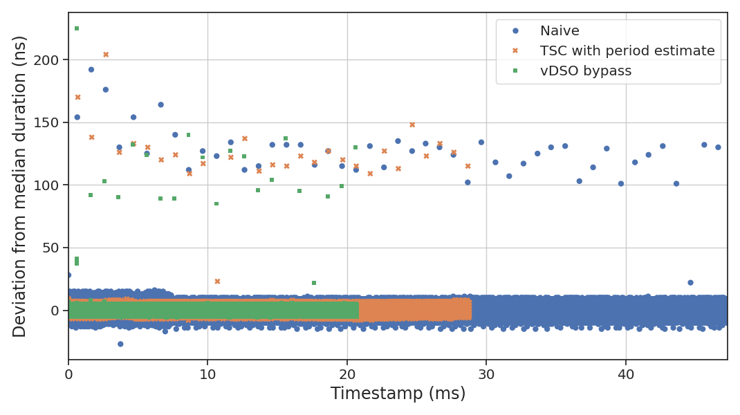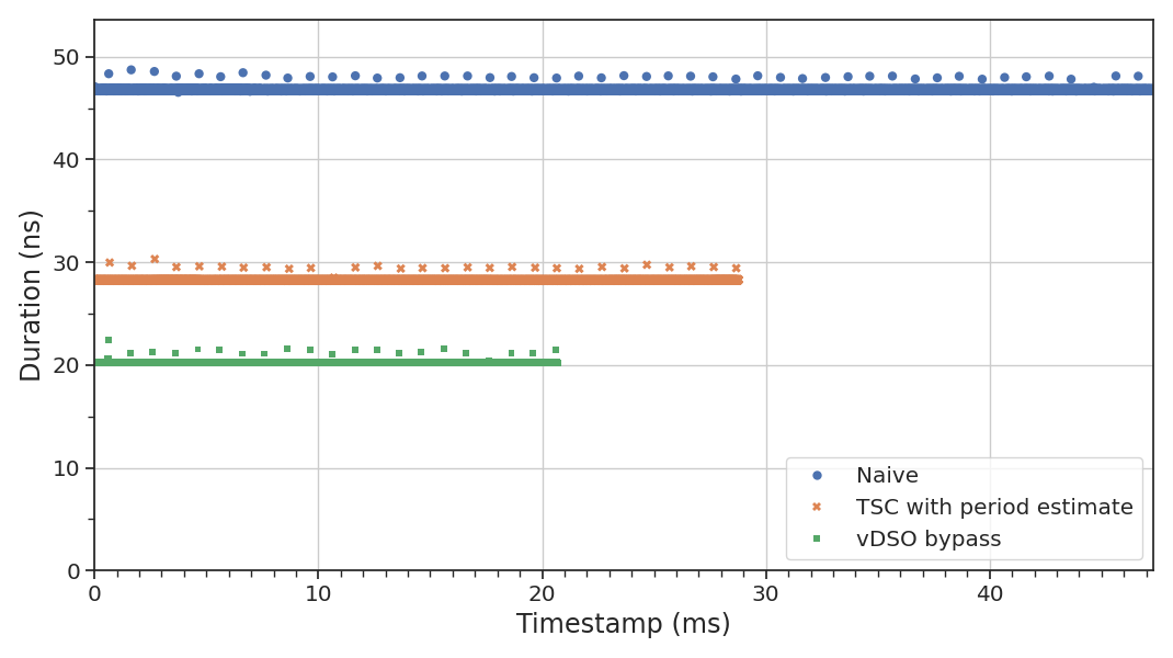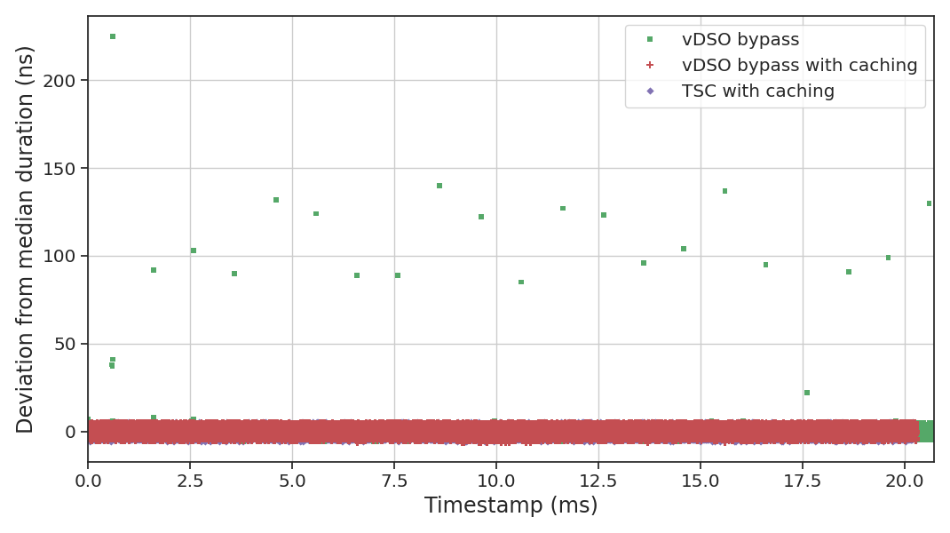 clustering around the median), but there is an obvious downside to bypassing the vDSO: whenever the